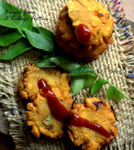 With the onset of monsoon comes the season of pakodas, bhajiyas n fritters. In India specially we have a big craze of enjoying rains with variety of bhajjis and a hot cup of tea or coffee. The more the friiters are crunchy the more we enjoy the rainy season. If you have some cabbge left in your storage and thinking what to do with it…just make these amazing cabbage fritters binded with chana dal. Perfect tea time snack in monsoon and even a great tiffin option for kids.