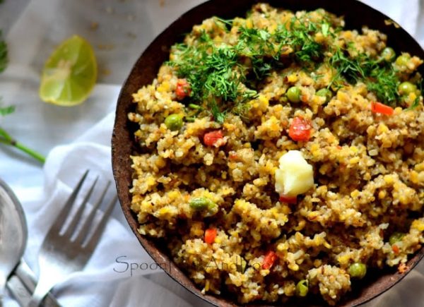 Broken wheat and millet combined together to make a heathy, nutritious and gluten free breakfast savory – Upma!