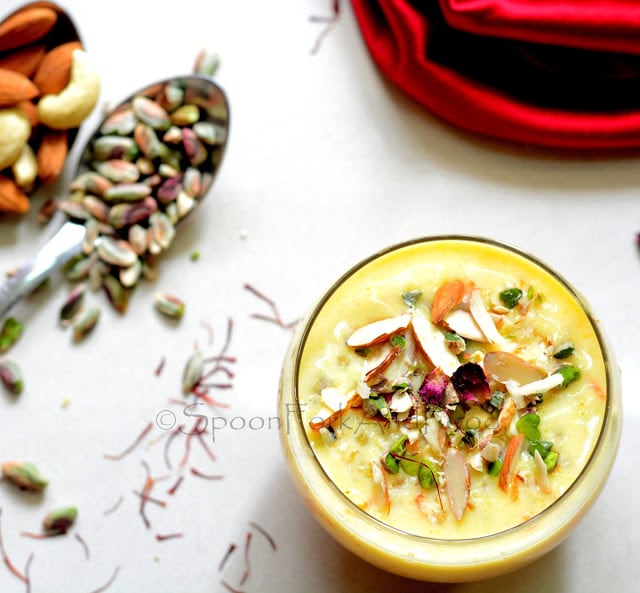 - Take some chopped nuts and rose petals and garnish the kheer before serving.