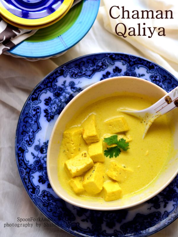 Chaman Qaliya is a creamy cottage cheese curry scented with fennel and cardamom that belongs to Kashmiri Cuisine. An aromatic curry that is cooked in milk and flavored with Kashmiri spices is a perfect vegetarian side dish commonly served on special occasions in the valley. The Kashmiris mostly rely on non vegetarian food other , expect the pandits. The vegetarians have a very few options left. They mostly eat Lotus stem, Potatoes or Paneer. Hence the Kashmiri cuisine carries a variety of Paneer dishes out of which one most exotic curry is Chaman Qaliya.