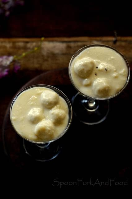 Thick full cream milk, reduced to half it’s consistency and cooked with fresh home made cottage cheese dumplings is simply delectable. The delicacy is often served to the groom for some extra pampering…haha!