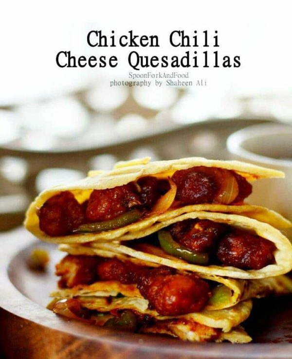 A quesadilla is a tortilla, usually a corn tortilla – but is also sometimes made with a wheat tortilla, that is filled with cheese and then grilled. Chicken Chili Cheese Quesadillas is typically made with chicken marinated in chipotle paste with a dash of lemon juice and then cooked with cheese. The mix is then filled in tortillas and grilled. This Mexican dish is super delicious and a perfect appetizer option for your brunch or high tea parties.