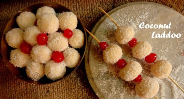 Coconut laddoo is one amongst those many amazing Indian sweets my mom has always made for us (me and my sis) when we were kids. Those long elaborated procedure of scraping the coconut, boiling milk, reducing it to make laddoos have certainly changed over a period of time. Now we have everything fast and instant. Being a home science student in school, coconut laddoo was the first dessert which i learned during my classes. Coconut itself is such a wonderful fruit that gives awesome flavor and texture to both sweet n savory.