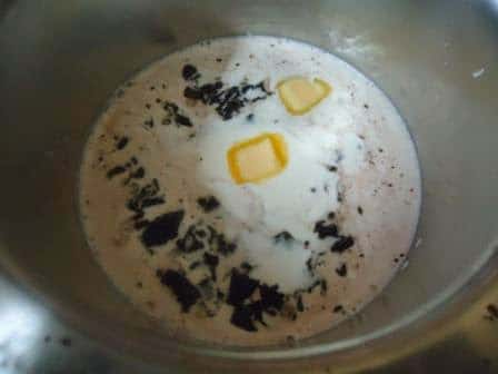 - Heat cream till bubbles appear in it and pour all over the chocolate pieces covering it completely.