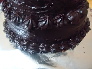 - Fill the rest of the ganache in a piping bag and start making rosettes on the sides of both the cakes. I used big star nozzle to pipe the florets.