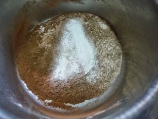 - Sieve all purpose flour, cocoa powder and baking powder together in a large bowl and keep aside.