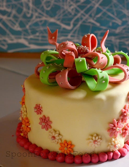December is the month of celebrations in our family. It starts with my sister’s birthday that comes on 5th Dec. It’s been years we haven’t been celebrating it together as she stays in Mumbai. This year is was her deep desired wish to celebrate her special day with family and friends. What better start this awesome month can get … so i decided to make it very very special for her. Being a blogger it’s obvious that everyone in my family expects a lot from me regarding food and party…lol. So as expected my sister came up with a wish that she needs a fondant cake exclusively designed for her that can very well signify her nature as well. The demands were very clear, soft colors, subtle patter, floral, elegant, extremely beautiful, gorgeous and very very girly! It took me a month to do all RND. After watching lots of videos on youtube and reading various websites, i finally tried my hands on fondant. It was a completely new experience for me and trust me i loved doing every bit of it. As i was new to fondant, i chose to follow the recipe from one of my co blogger friend Pooja Khanna’s blog www.2blissofbaking.com