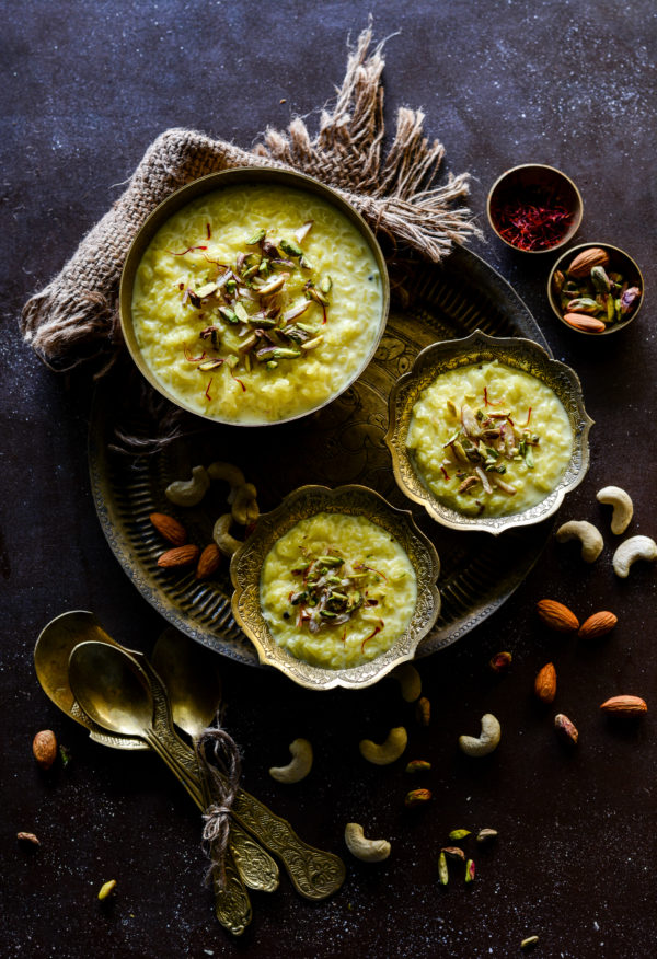 Okay so now that we are done with all self praising session ha ha ha …let’s just celebrate the success with some Desi Style Kesar Chawal Ki Kheer. I’m sure we all have grown up eating mom’s special creamy and luscious Chawal Ki Kheer. In my house my mom still makes it whenever anything good happens in the family so keeping the trend alive let’s just enjoy Chawal Ki Kheer specially flavored with Saffron and loaded with nuts.