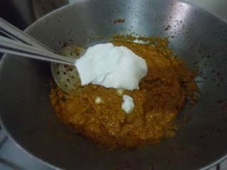 - Take spoonfull of cashew nut paste and add it into the masala. Stir in regular intervals.