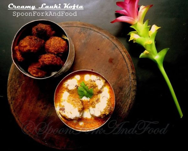 long i had been wanting to make lauki kofta in a rich thick creamy gravy. Today while hunting veggies in the fridge i came across a lauki and some left over fresh cream/malai and of course the cashew nut paste which i always keep handy for making creamy stuffs.