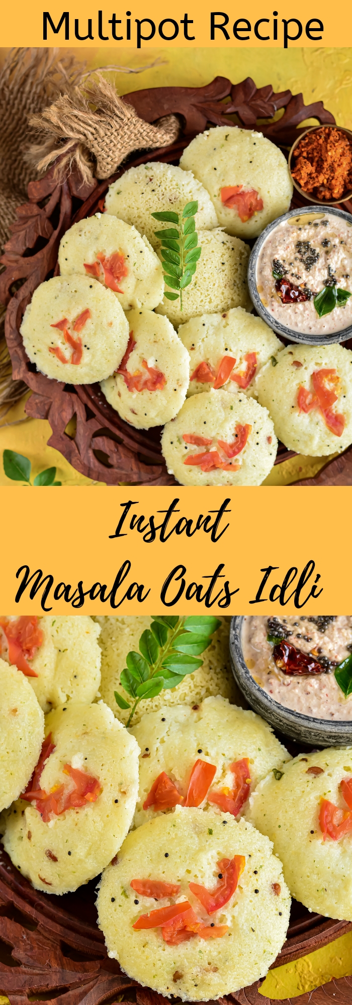 A great day begins with a good healthy filling breakfast. It’s always advisable to keep the breakfast heavier then any other meal. In India breakfast happens to be one of the most important food gathering where the entire family sits around and discuss the day further. One such popular breakfast in my country is Idli with Sambhar or Chutney. Rice and Dal soaked over night, ground into a coarse batter and later fermented. The batter is then poured into mold and steamed into cakes, then served with accompaniments. It’s nutritious, rich in flavor when served with the very famous Podi aka Gun powder and a complete breakfast that fills your stomach well and keeps you energized the whole day. With time Chefs and home chefs started adding variations to the humble Idli by using millets, rawa, vegetables and oats. Today i’ll be talking about MASALA OATS IDLI