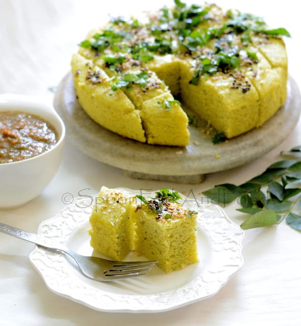Dhokla is a Gujarati snack that has commonly taken a place at every Indian kitchen now days. Dhokla is usually a savory cake that is baked/steamed and then tempered with mustard, cumin and curry leaves. With time we have come across many variations of dhoklas, usually it is made with Besan/gram flour but there is another very famous version of it made with rice and lentils.