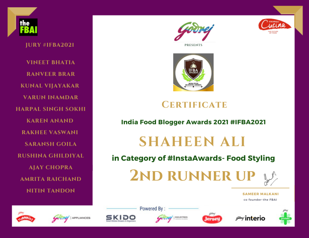 It’s been so long I cooked something special for my family and did what I’m best in….styling and clicking food. This is technically my first post after winning the IFBAAWARDS 2021 for food stylist and best food blog awards by the FBAI powdered by Godrej.