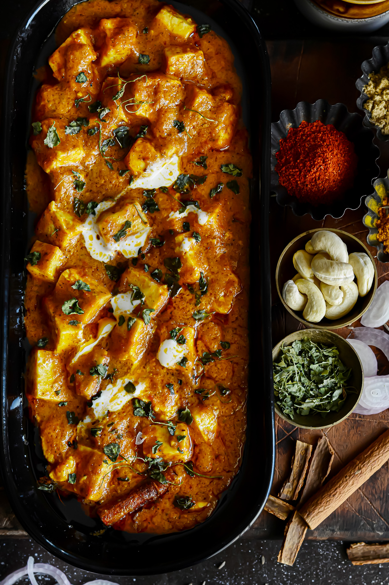 Paneer Makhanwala is a slightly sweet creamy dish of paneer that is rich in flavors and texture. It was first originated in the Indian subcontinent, in which the gravy is prepared usually with butter, tomatoes, cashews or cream. Spices such as red chili powder and garam masala are also used to prepare this gravy . Paneer Makhanwala is one of the most common recipes of North India, it’s a perfect combination of spiciness and creaminess of its gravy makes it simply irresistible and versatile. Also known as Paneer Makhani, this delicious paneer dish can be served with chappati , naan or rice.