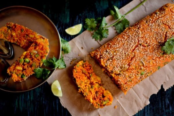 Early this morning while surfing on net, i came across a savory cake recipe which was healthy, nutritious , delicious and scrumptious. It’s Savory Semolina Cake. Though the original recipe had carrots and bell peppers too it in, but i chose to add just peas and corns. The recipe i made today is adapted from https://cooked.com.au/Anjum-Anand/Quadrille-Publishing/Indian-Food-Made-Easy/Light-meals-and-snacks/Savoury-semolina-cake-recipe with few innovations and variations done by me as per my requirement.
