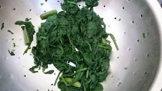 - Blanch spinach leaves and drain water and keep aside to cool.