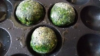 - Heat the panniyaram pan and brush it with oil. Place the koftas in each section and fry them from all sides.
