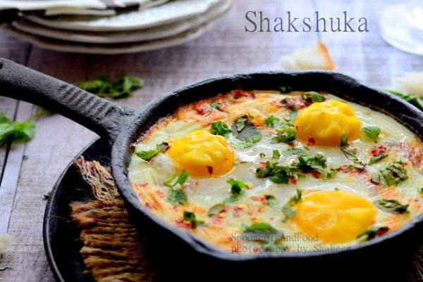 SHAKSHUKA …. in Israel Shakshuka means Breakfast. Baked eggs on a spicy bed of tomatoes and peppers is a famous Middle Eastern Breakfast. This delicious breakfast is healthy and keeps your tummy fill the whole day. Loaded with the goodness of veggies and eggs is a rich source of protien and vitamins. Shakshuka is normaly baked but can also be made on a stove top. The egg whites spread on the bed of tomato sauce and gives a foamy, cushion texture with runny yolks. I personally don’t like runny yolks hence, i chose to bake it a little more than the regular baking time. But you can keep it runny, it’s personal choice. Enjoy this healthy breakfast with some toasted breads or buns. Wanna know how..? Let’s quickly check out the recipe ….