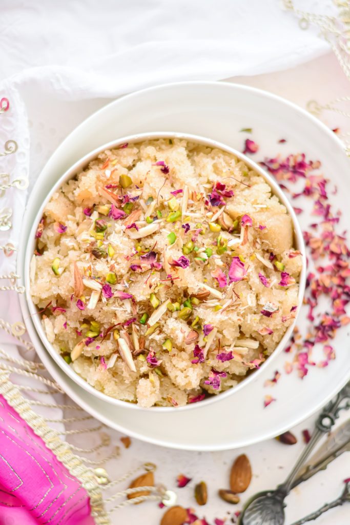 Semolina, when made sweet, is called sheera. Several variants of this dish are available under other names in various parts of India. For instance, in Maharashtra, it is called sheera which is the sweet version and in North India it is called sooji (suji) halwa or Mohan bhog. It is also served in Europe and United States as semolina pudding. It was first brought into India by the Arabs, and was adopted as a number of Indian varieties. The normal variety though is unflavoured and prepared with just semolina, sugar, ghee, and milk. In India every celebration starts with making sweets at home. SUJI HALWA is the most delicious and commonly made dessert in our homes. Most of us have grown up eating Suji Halwa during special occasions, festivals and to celebrate good news.