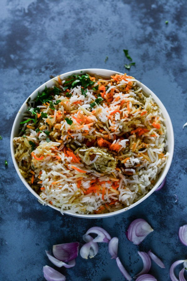 Biryani is a very complex dish, it requires a eyeballing of ingredients and perfect hands on technique. They say the more complex a Biryani is, the more delicious it tastes! In India we have a huge variety of Biryani that is prepared in both veg and non veg version. The non vegetarians though have more choices as in Fish, prawn, crab, chicken, beef, mutton, pork etc. And technically there is no such authentic recipe for Veg Biryani. Vegtable Biryani eveolved with time looking into the need of Biryani treat for the vegetarians. But i’m glad that the evolution turned out to be equally delicious than a chicken or a mutton biryani.