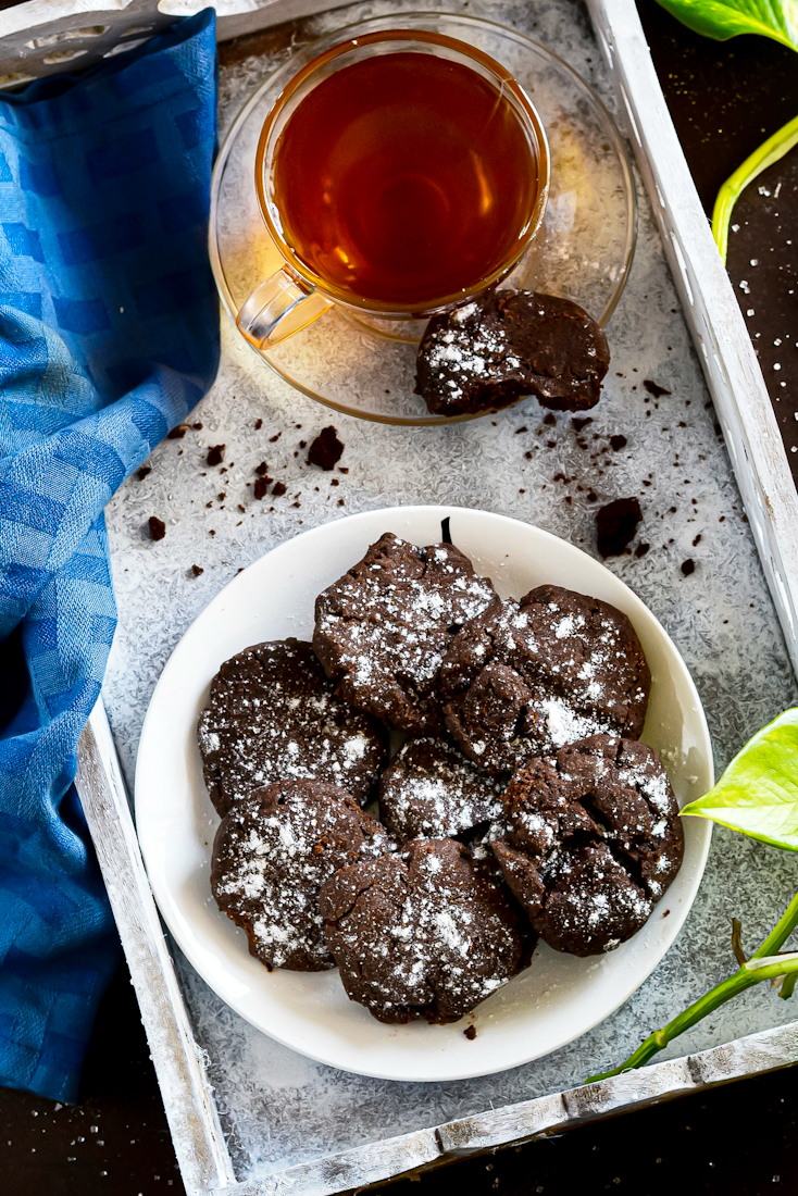 Cookies are certainly a double doze of chocolate with crunchy sugar granules in every bite. If you don’t like granulated sugar in your cookies, just add castor sugar or powdered sugar . The recipe shared here is eggless but it can also be made with eggs by replacing milk and adding vanilla extract. I made this eggless because my son often carries these goodies in his tiffin and i want everyone to enjoy this yummy treat without any doubts of having eggs.