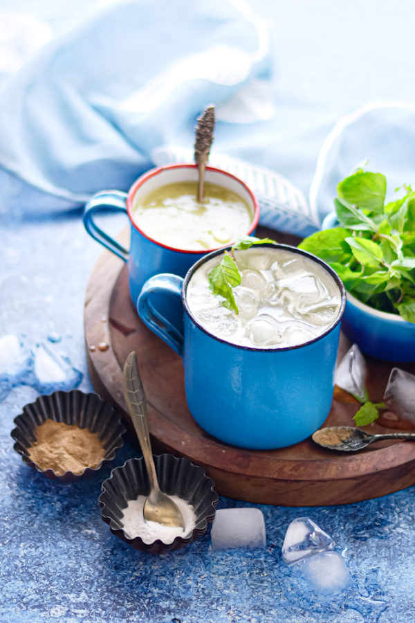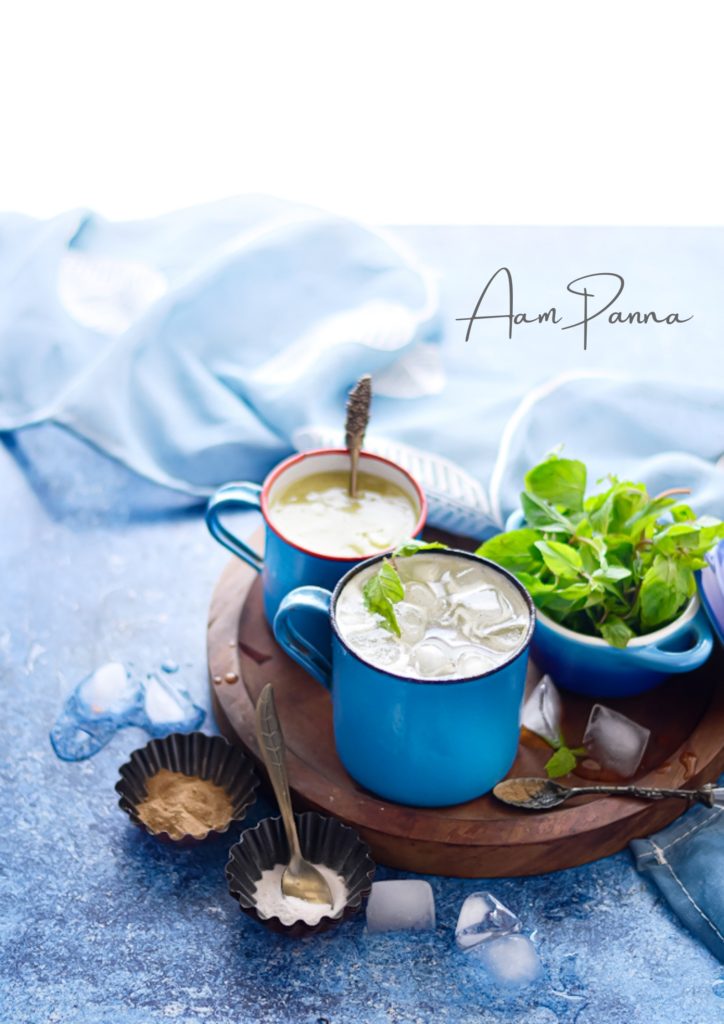 - To make Aam Pann, take a glass and add handful of ice cubes along with 4-5 tbsp of prepared concentrate and some chilled water. Stir well and garnish with mint leaf and serve.
