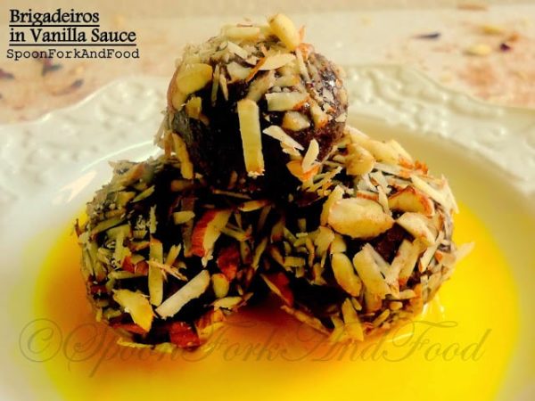 Earlier due to some personal reasons i were not able to accept and complete the challenge, but looking into my co-blogger’s amazing posts i somewhere inside was dying to take up the challenge. But again as i were lacking resources i had very less options left. Initially planned baking a cake but later had to settle down making something more easy yet scrumptious. So finally landed up making Brigadeiros with creamy silky vanilla sauce.