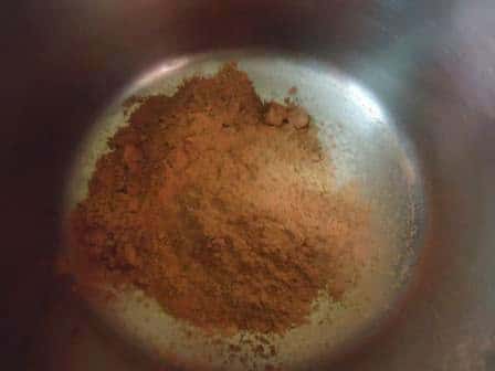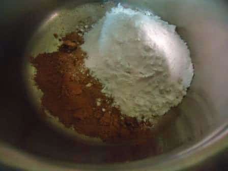 - In a clean dry bowl take cocoa powder and brown sugar and whisk together.