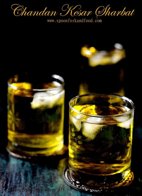 Kesar Chandan Sharbat is a perfect blend of Saffron and Sandalwood powder/paste. Make a concentrate/syrup and refrigerate it and use through out the summers to make this amazingly refreshing drink. This particular sharbat was something i never heard before, unless until i saw the recipe shared by my fellow blogger Neha Mathur on her blog. I went through the whole recipe and found it too interesting to try. In the original recipe Neha used Sandalwood powder, but as i had a stick with me, i used it to make a paste out of it and use in the drink. The recipe here is adapted from Kesar Chandan Sharbat by Whisk Affair