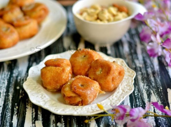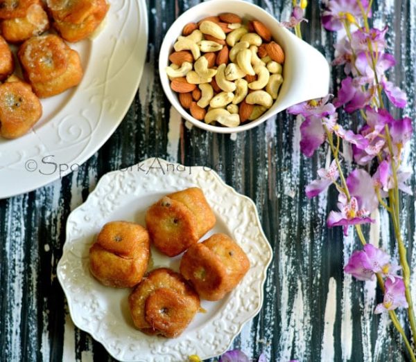 In southern part of India , we get to see a similar sweet named as Balushahi | Badhusha | Chadralika . The method of making the dough is nearly same but the filling differs. Badhusha is non stuffed fried sweet. Lavang Latika is easy to make but it certainly requires skilled hands to get the folds correct. The clove is inserted to seal the folds and that too should be done carefully else the envelope may open while frying. So let us just move on to check the ingredients required and the method of making this Diwali special sweet ….