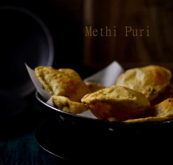 I love Indian breads, for the reason that we have so many varieties in it. From rotis to the parathas, from naan to kulchas and from theplas to puris…everything is just so delicious and filling. Those who love fenugreek will agree with me that this one leafy vegetable can be used in various ways to enhance the flavor of the dish. One such enticing fried Indian bread is Methi ki Puri… call it poori or puri, it’s all the same. Hot fluffy methi puris are something which i love to have with pickles. The flavors are so wonderful and want you to have it more & more. Check out the easy recipe of methi pooris below, but before that lemme mention that the image styling was isnpired by Farrukh Shadab from Cubes N Juliennes … Though i strongly feel that it’s gonna take ages for me to replicate any of her image, still i tried doing my bit in my very own way.