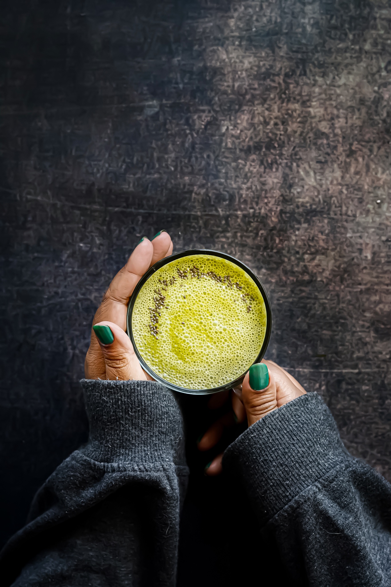 - Pour into a mug, top it with some cream, chia seeds and enjoy!