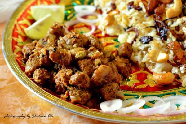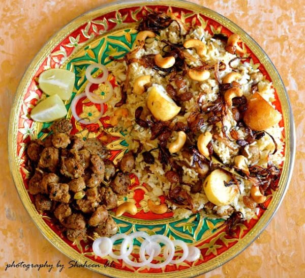 12. Garnish it with fresh mint leaf, freshly chopped coriander, lemon juice, fried onions, some kewda water and fried dry fruits.