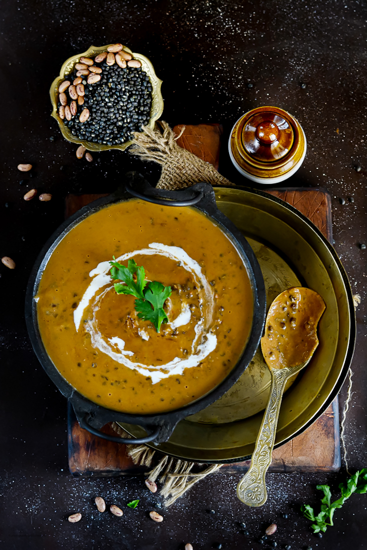 Thick and creamy Punjabi Dal Makhni/ Dal Makhani made using a combination of Whole Urad Dal and Rajma is a very popular recipe from the Punjabi Cuisine. This recipe is not just everyone’s favorite but also widely adapted by people from all over India and across the globe. Dal Makhani is today one of the most loved dish in hotels as well. The preparation though vary from person to person but the basic remains the same since ages.