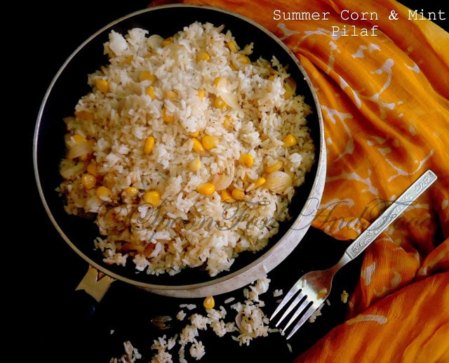 It’s summers and i wanted to have something mild yet filling. What better than a corn and mint pilaf. It’s less spicy and yet filling. Had handful of corn kernels and since long i was looking for a chance to use them. While exploring internet today i came cross a perfect pilaf recipe in which there was a wide usage of corn kernels. The recipe is adapted from www.marthastewart.com and the link to the original recipe is http://www.marthastewart.com/354038/summer-corn-and-rice-pilaf