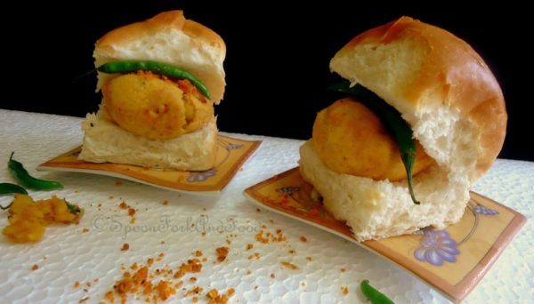 Basically the Vadas are made with boiled mashed potatoes spiced, commonly with chillies, garlic, asafoetida, turmeric, mustard seeds and garlic, but the spices may vary. The mass is then coated in gram flour batter and deep fried. The resultant fritter is served in a bread bun, accompanied by one or more chutneys.