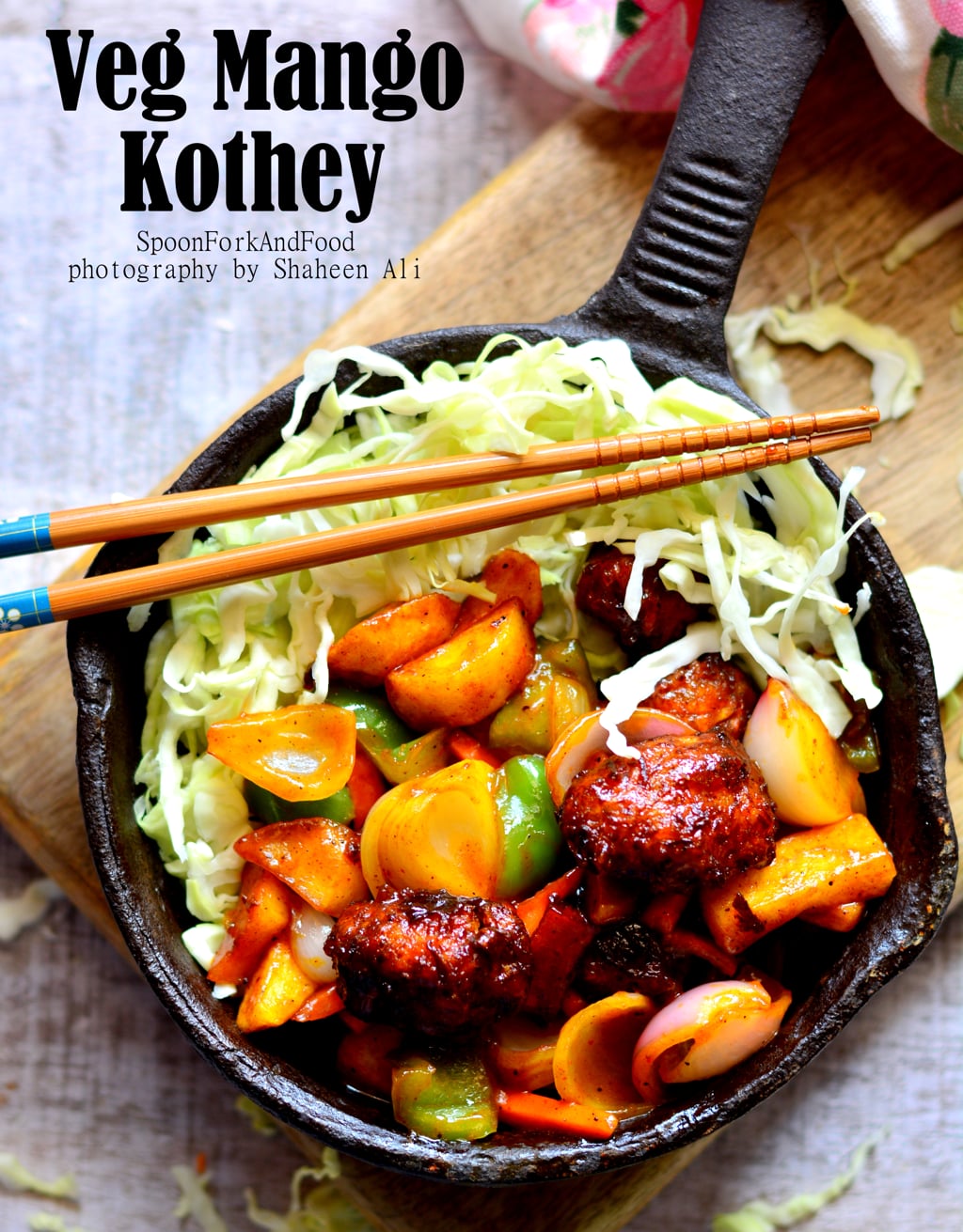 Vegetables like, cabbage, capsicum, carrots, potato, onion and cauliflower coated with plain flour and cornflour to give a crispy texture is deep fried to make fritters and later sauteed in a saucy gravy made with mango drink, gives a sweet sour taste to the snack and is very appetizing. Usually kothey is cut, fried vegetables, but you can grate the veggies and make small balls like manchurian and deep fy them and later teem them with sauces.