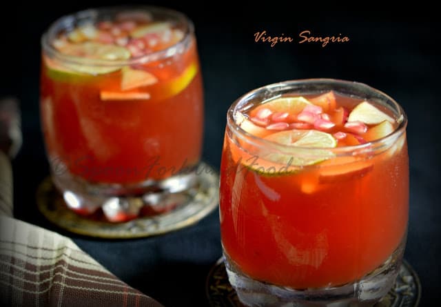 Virgin Sangria is a very famous mocktail which is made with fruit juices and pieces of fruits with pee on it. It not only quench your thirst but is also a rich source of Vitamin C.