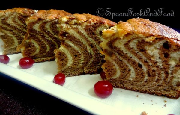 Zebra-striped cake made with patterns of vanilla batter and cocoa batter is one of the impressive looking cakes. It looks complicated to make but in fact its very easy to get the patterns.